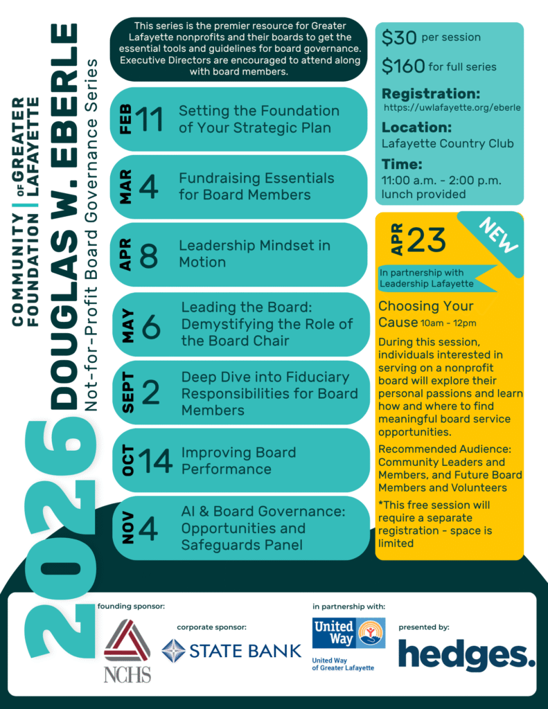 To register for the series, or an individual session, visit https://uwlafayette.org/eberle/